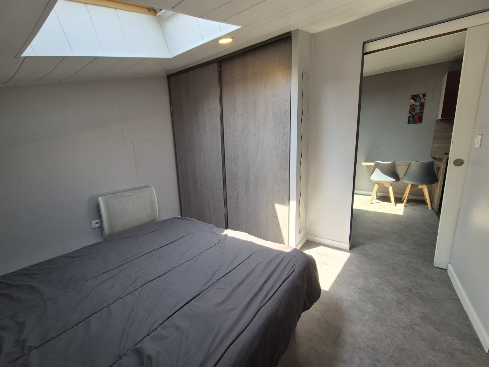 Il est composé d'une chambre avec placard, une salle d'eau avec WC, une cuisine ouverte sur séjour.